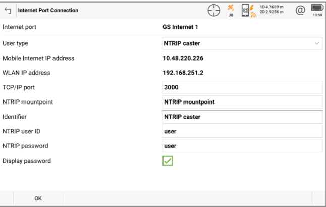 - NTRIP Caster: configuración desde Captivate para que el receptor GNSS sirva como base por internet NTRIP (modem GPRS o WLAN) para conectar equipos móviles o UAVs (drones)