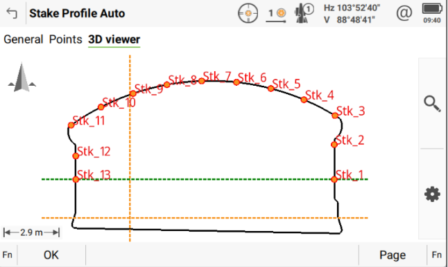 - Límites de sobre y sub excavación en el generador de perfiles - Cálculo del centro de mejor ajuste de túnel con puntos previamente medidos - Auto replanteo de perfil (el láser va replanteando iterativamente y deteniéndose en cada punto para marcarlo sin intervención del operador)